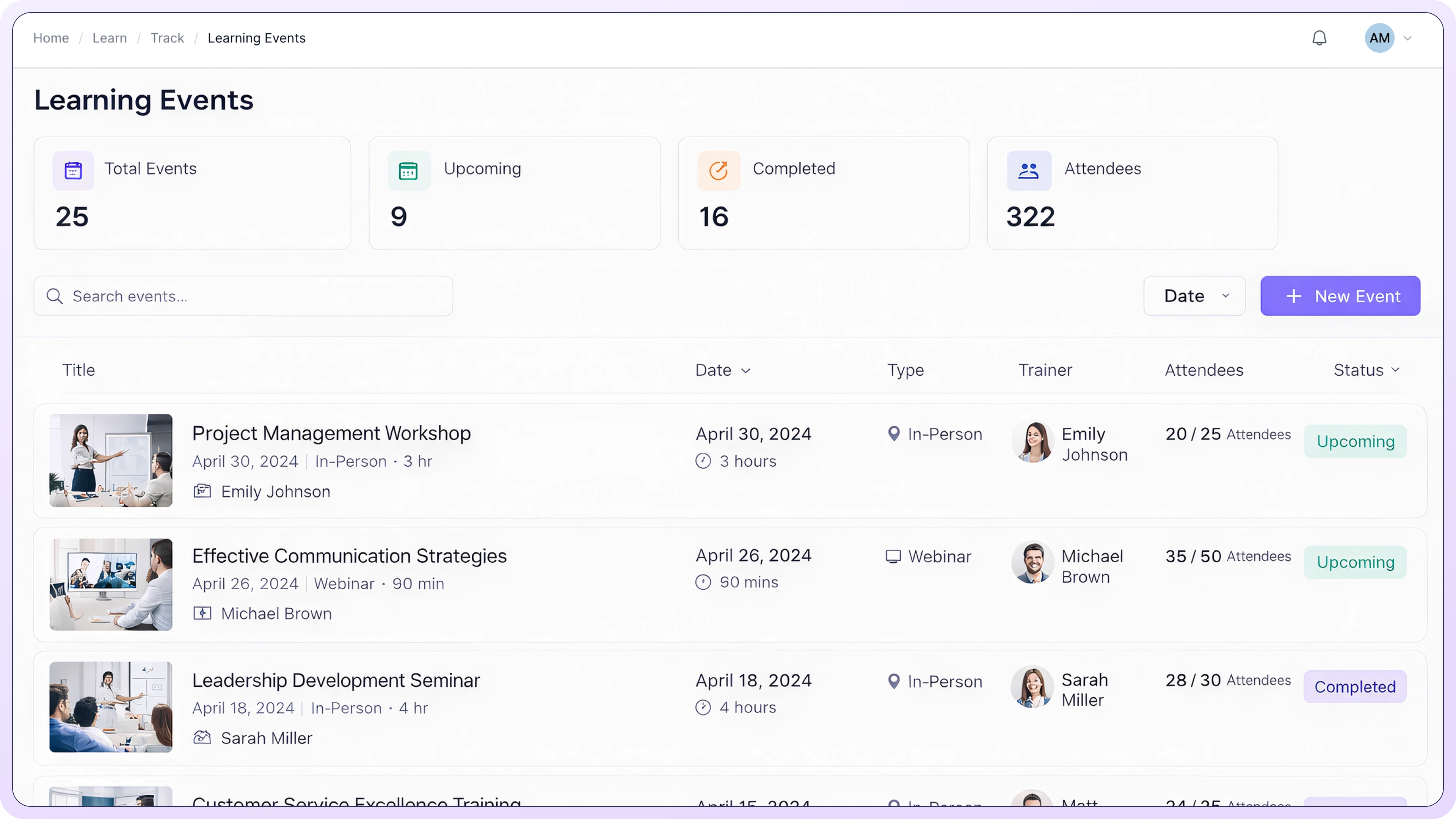 TraineryLearn supports instructor-led training, eLearning courses, blended learning, coaching programs, certifications, and compliance training providing full visibility across the entire learning ecosystem.