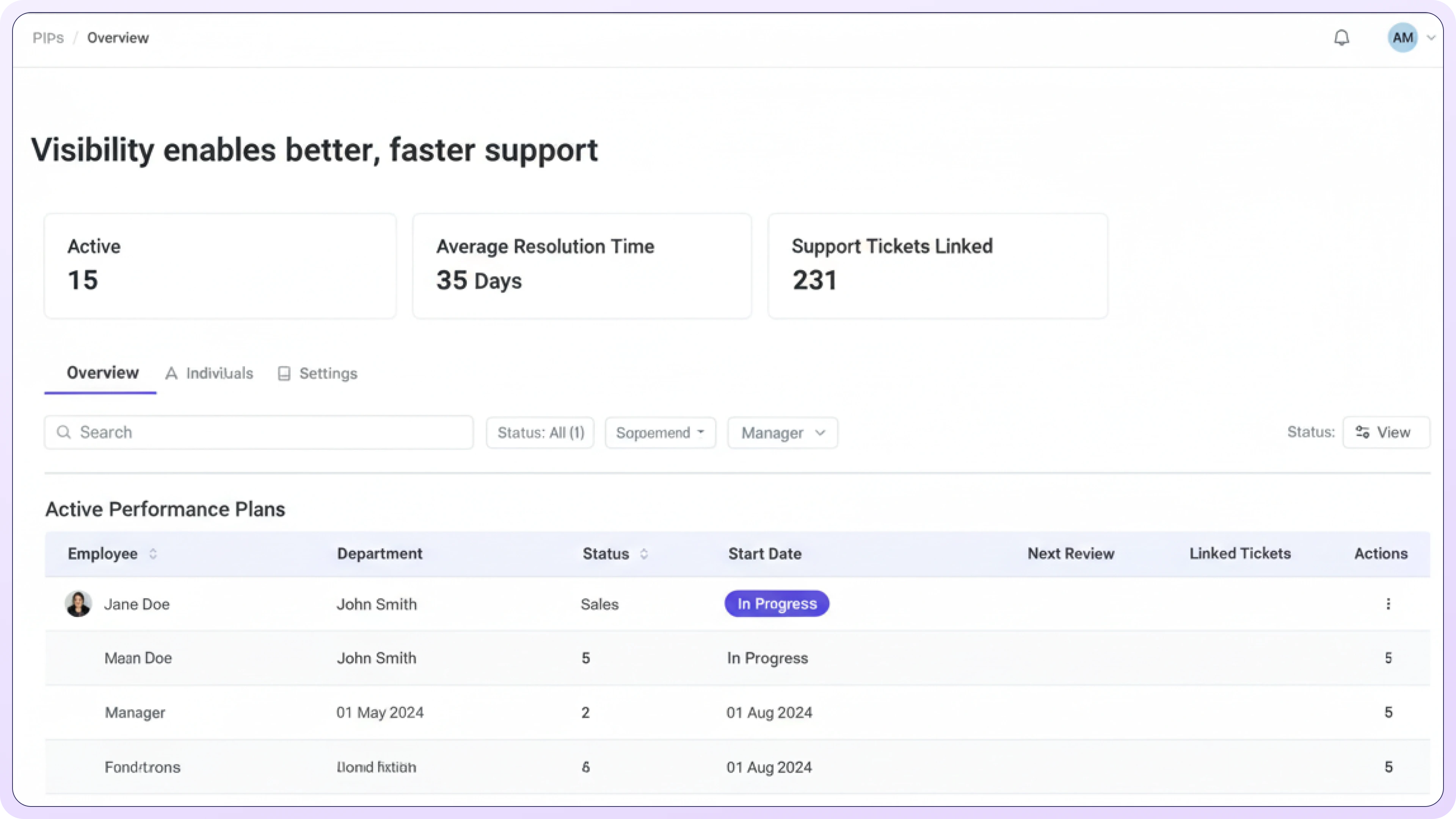 Employees perform better when expectations are explicit. Clear improvement plans remove ambiguity and reduce anxiety around performance conversations.